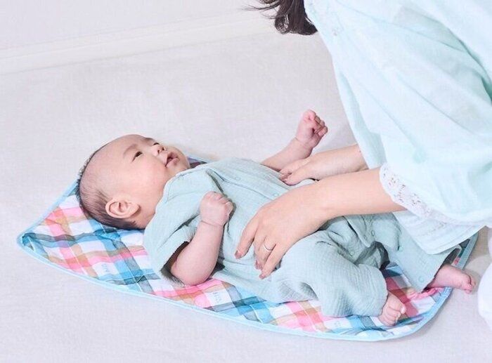 おむつ替えマットには、中わたが入っているので、フローリングなど床がかたいところでおむつ替えをするときにも安心です。マットのサイズは約60×35cm。赤ちゃんがおしっこをしてしまっても、床が汚れるのを防いでくれます。